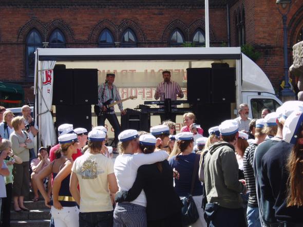 Her er det dog til et halbal med gigantisk lys anlæg og dårlig akustik