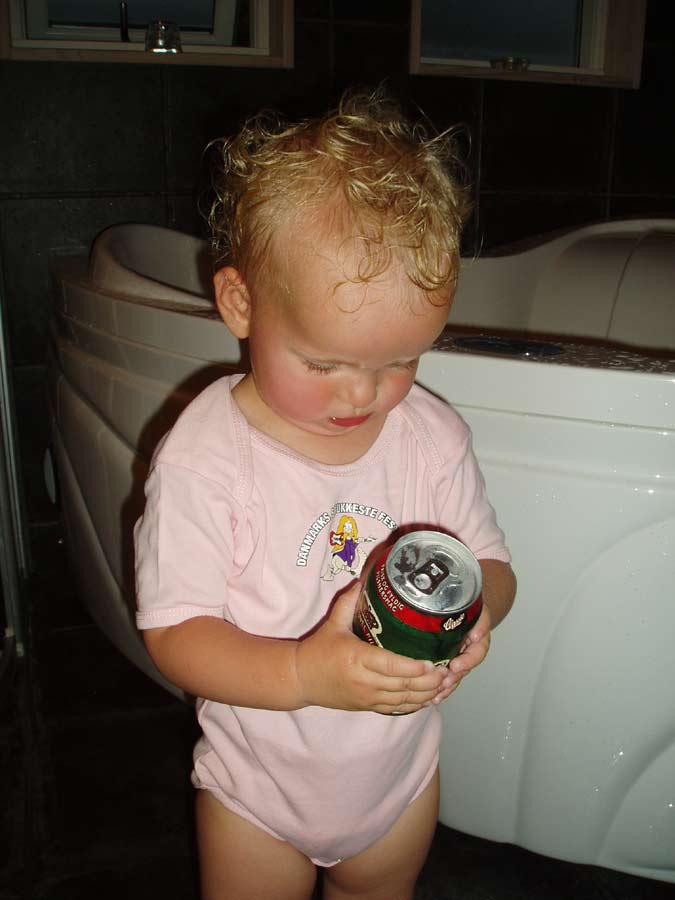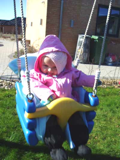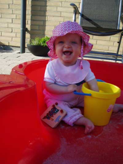 Vi har lige været i bad, så Isabella er klar til...................Første dag i vuggestuen