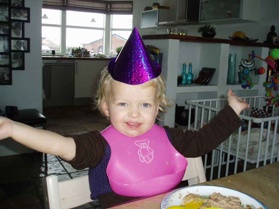 Nytårshat og matchende plastik-smæk... cool ! :o) Charmesmilet! Familiens stolthed...